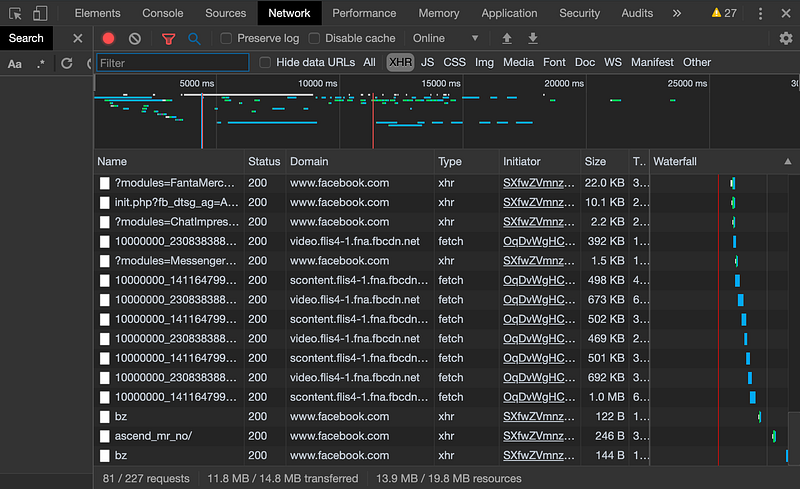 If this doesn’t work, the next step is to investigate the cookies, and check if you need to do a previous request in order to generate the necessary cookies for the server to send the reply you are expecting. Sometimes this could be a long and painfully processes, so another way to do this is to export the request that return the information you want into a cURL command (on Chrome, right click in the request you want and select Copy > Copy as cURL), and check in your command line if that works. Then you start to remove what you think might be unnecessary data until the response isn’t the same. That’s how you find out what fields are required or not.